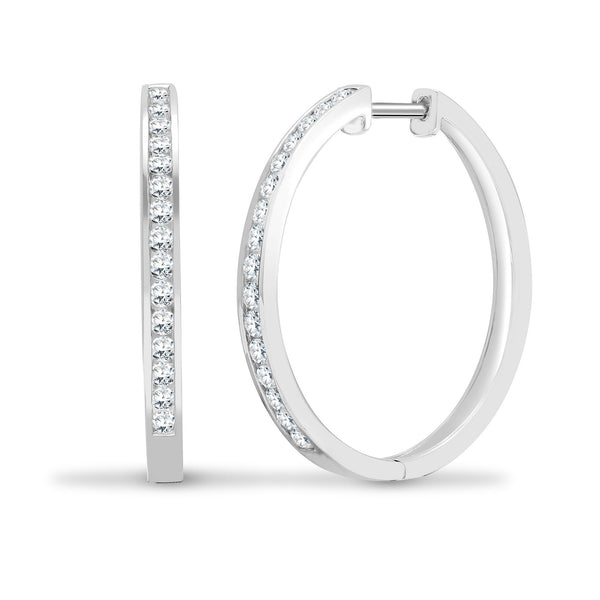 18ct White 0.90ct Natural Diamond Channel Half Set Hoop Earrings