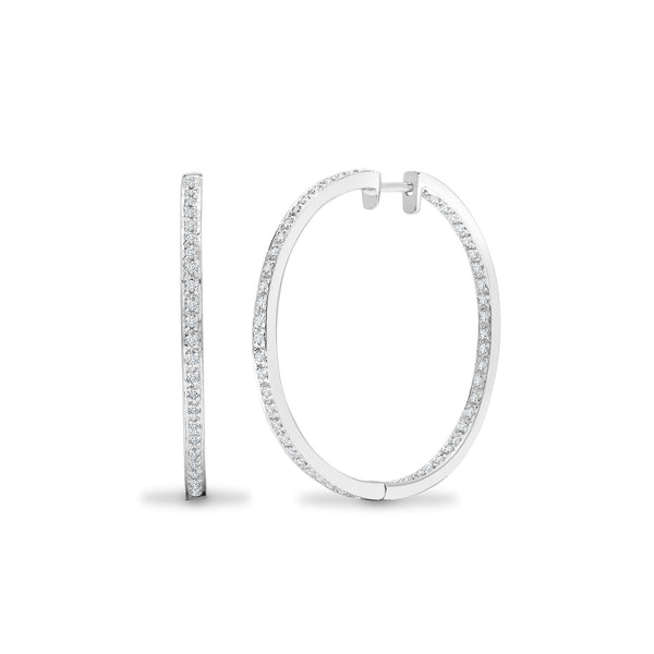 9ct white gold 25pt Natural Diamond Hoop Earrings with a hinge and a notched post fixing.