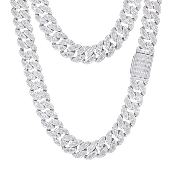 925 Silver Baguette CZ Set Cuban Chain 14.0mm