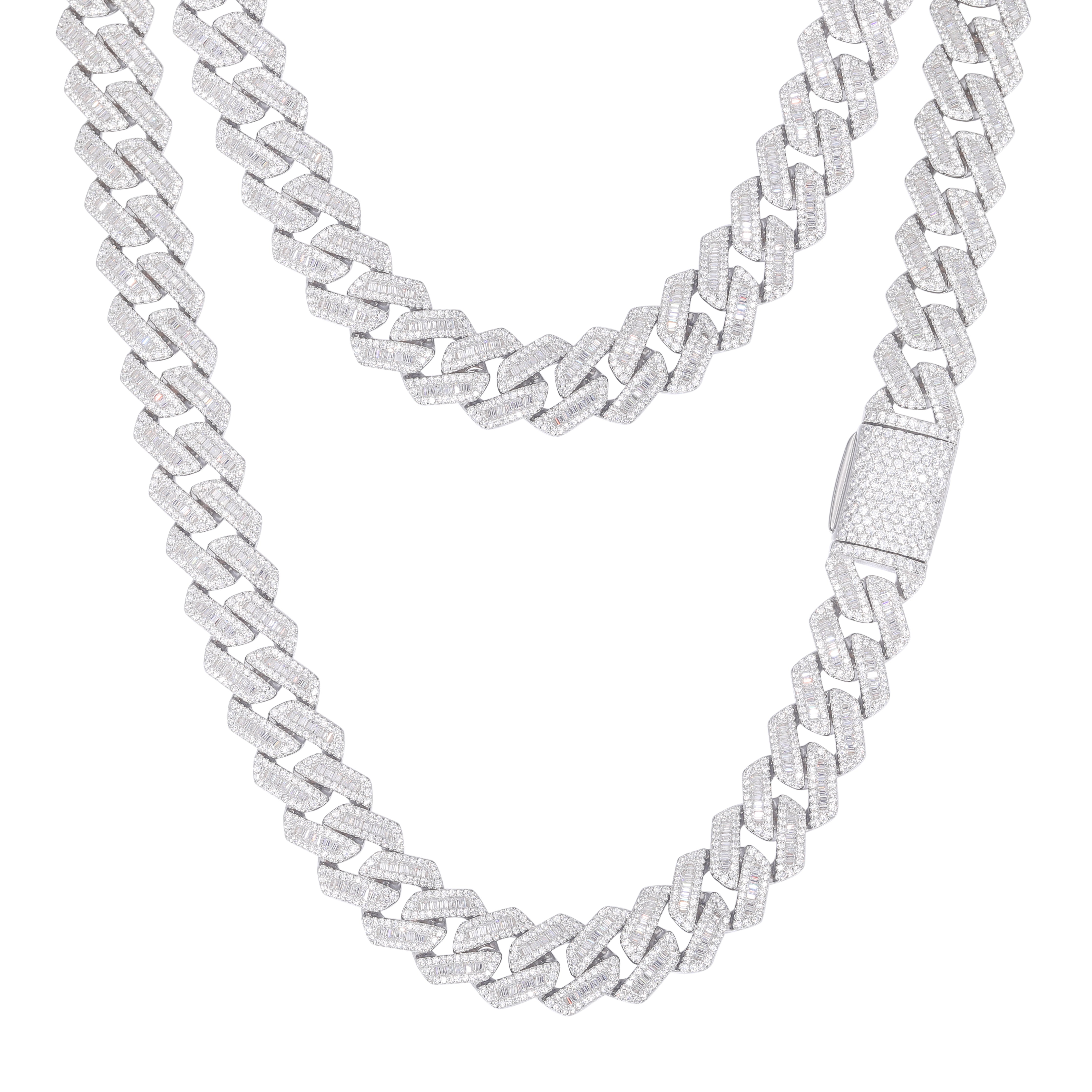 925 Silver Baguette CZ Set Cuban Chain 12.0mm