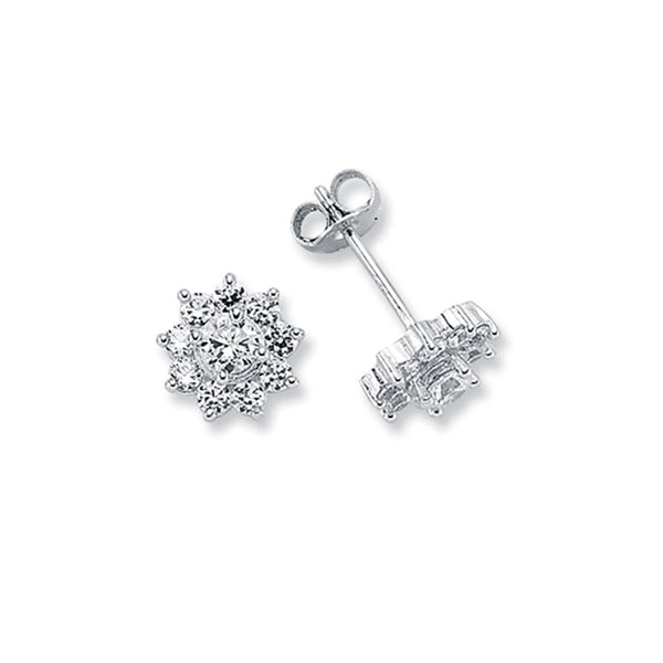 925 Silver CZ Set 10x1 Cluster Stud Earrings