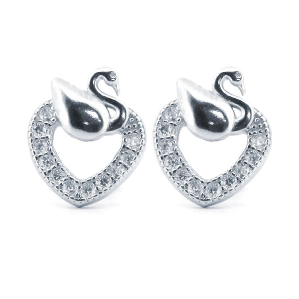 925 Silver Rhodium Plated CZ Set Heart Stud Earrings