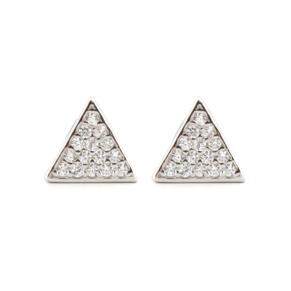 925 Silver Rhodium Plated CZ Set Triangle Stud Earrings