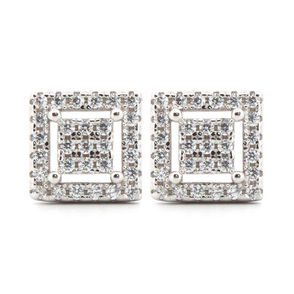 925 Silver Rhodium Plated CZ Set Stud Earrings