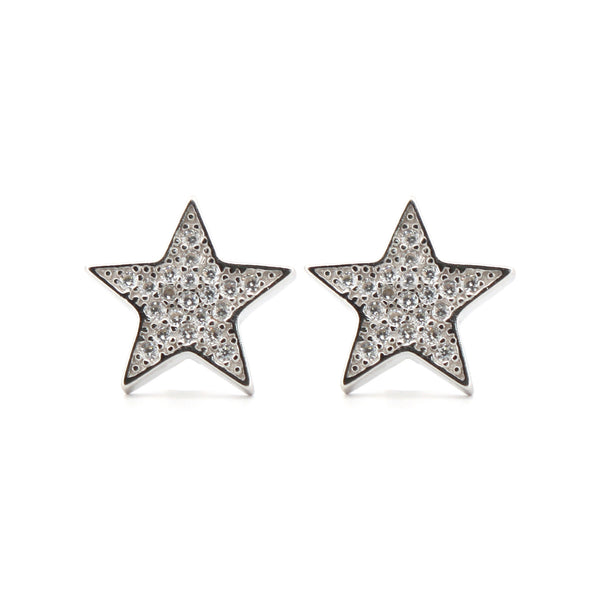 925 Silver Rhodium Plated CZ Set Star Stud Earrings