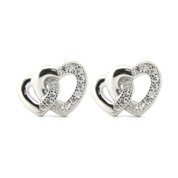 Product: 925 Silver Rhodium Plated CZ Set Heart Stud Earrings