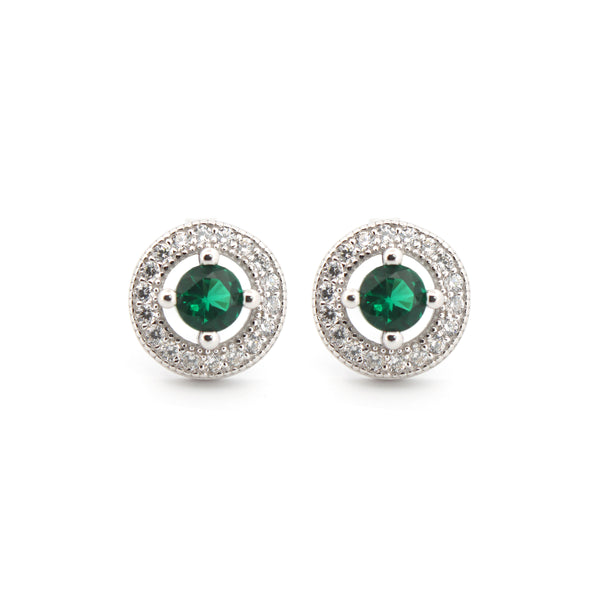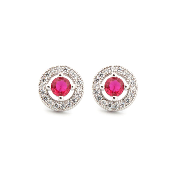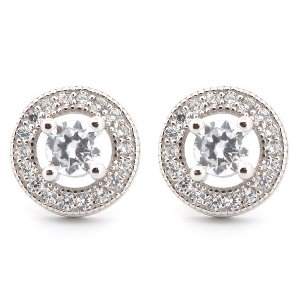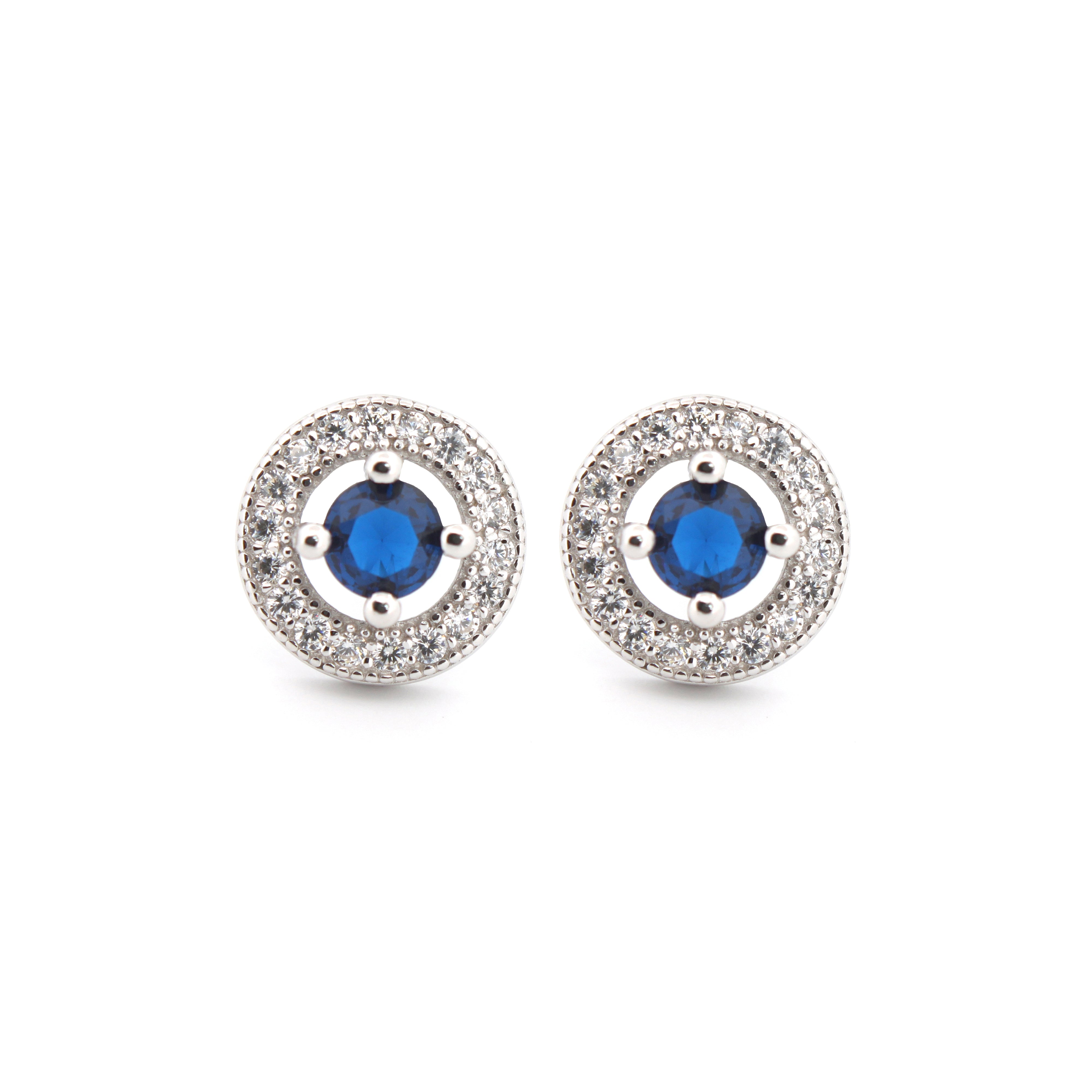 925 Silver Rhodium Halo Stud Earrings Sapphire Centre CZ
