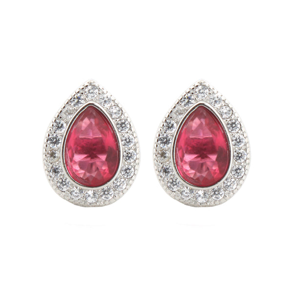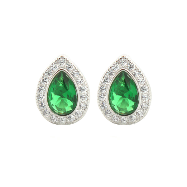 925 Silver Rhodium Pear Shape Stud Earrings Sapphire Centre CZ
