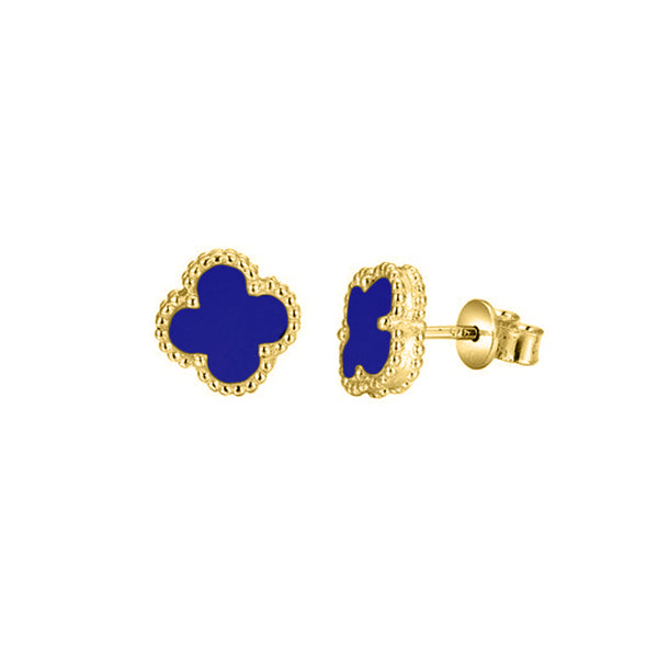 925 Silver Rhodium Clover Stud Earrings Onyx