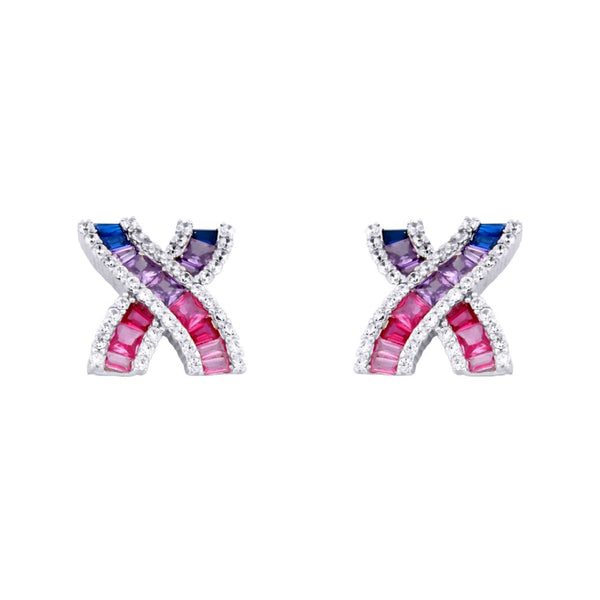 925 Silver Rhodium Plated Multo Col CZ Set Kisses Stud Earrings