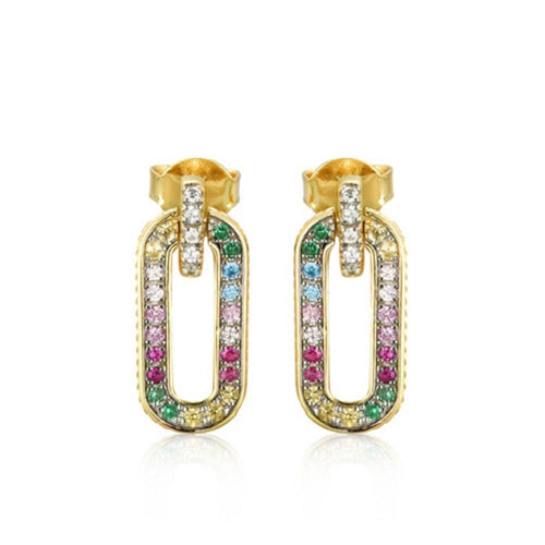 925 Silver 14ct Gold Plated Multi Col CZ Set Earrings