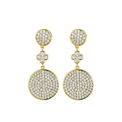 925 Silver 14ct Gold Plated CZ Set Stud Drop Earrings