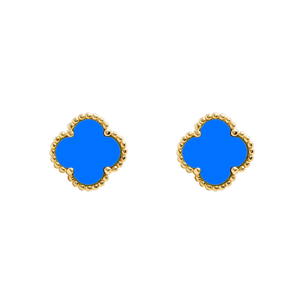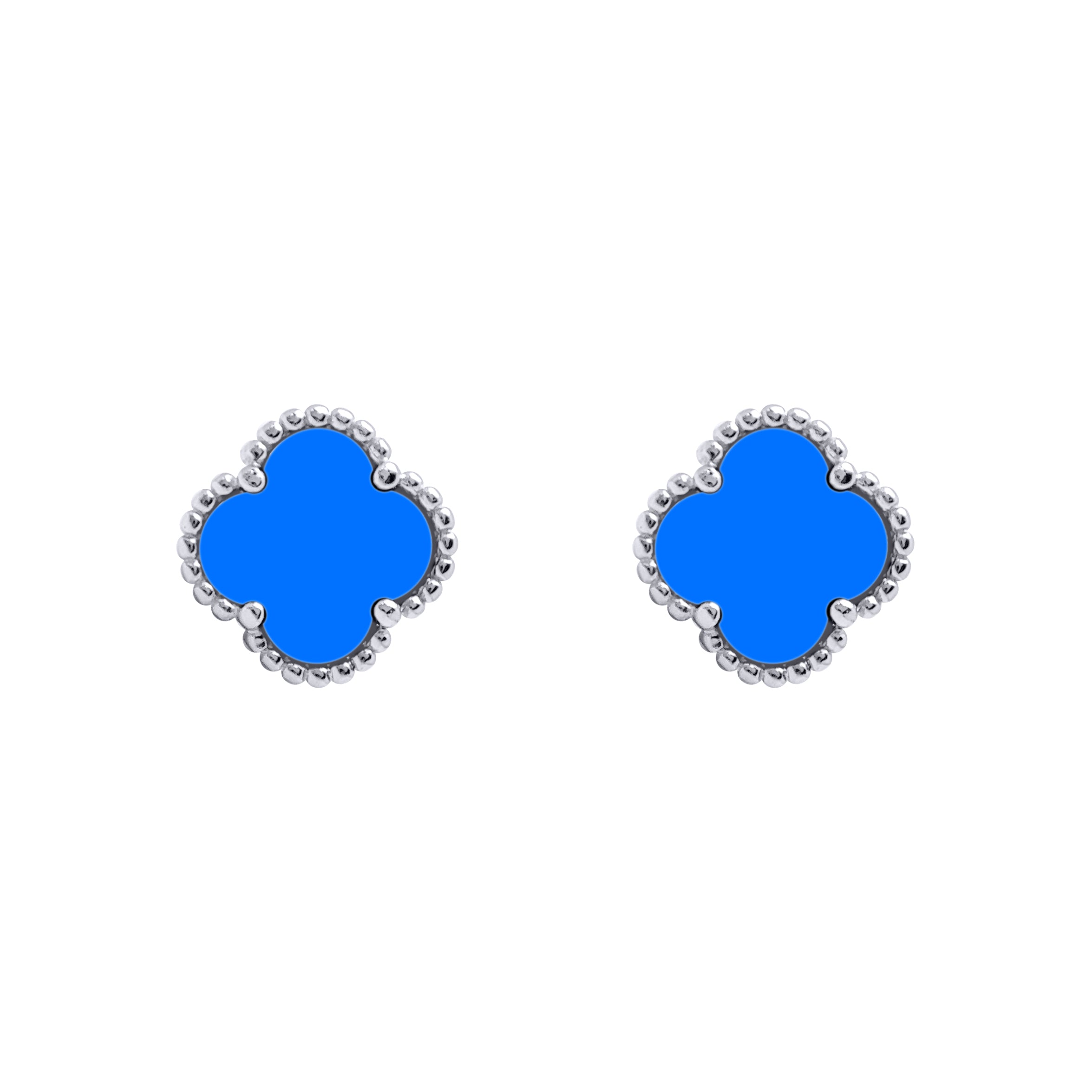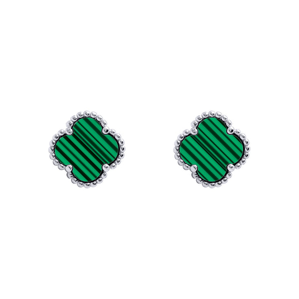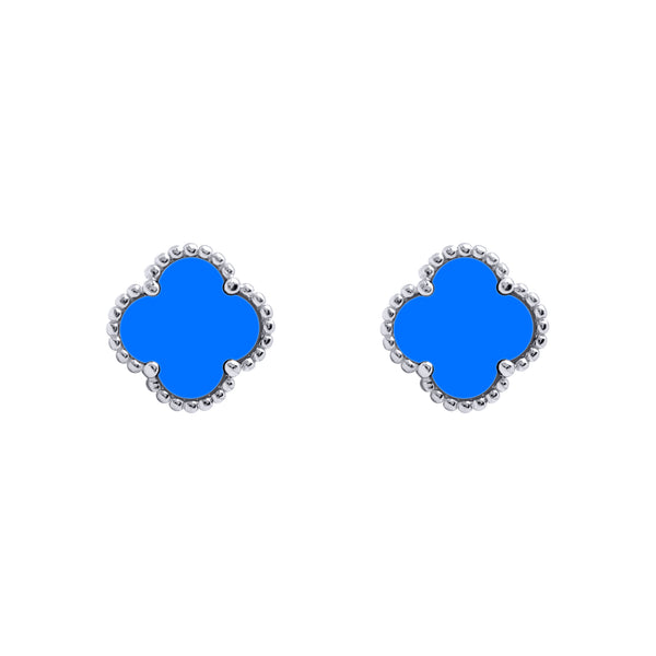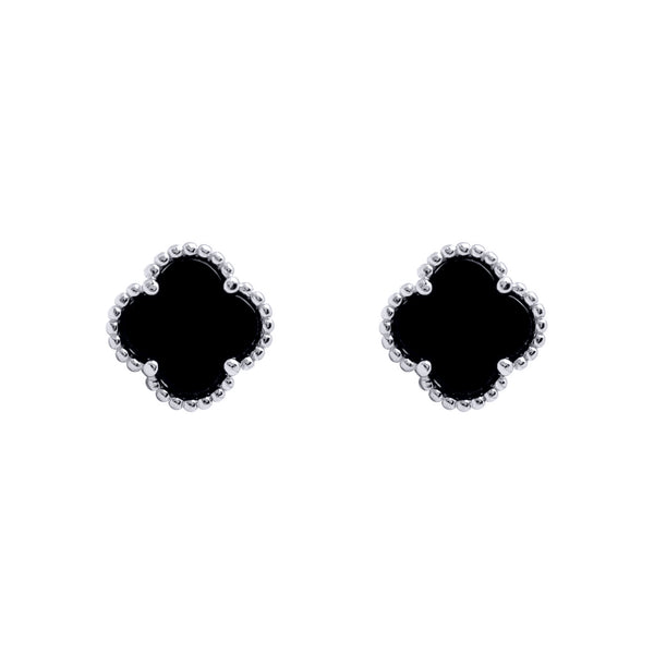 925 Silver Rhodium 5 Clover Stud Earrings Black Onyx Colour