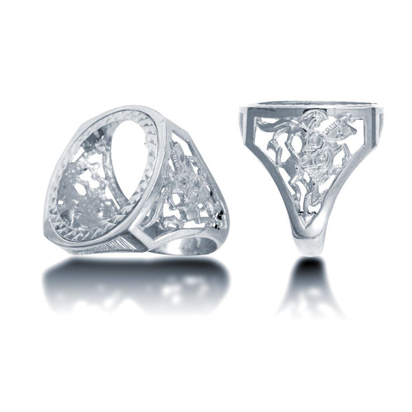 solid 925 silver hand finished full square St George Sovereign coin mount ring