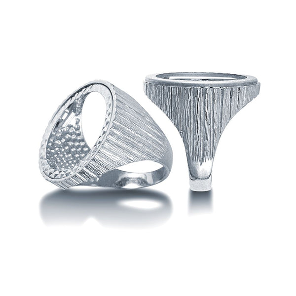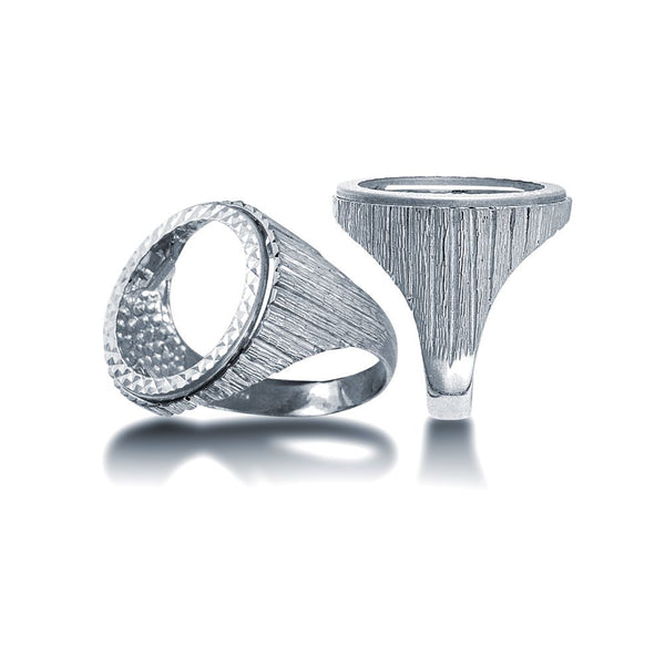 solid 925 silver hand finished full sovereign size coin mount ring with ribbed shoulders