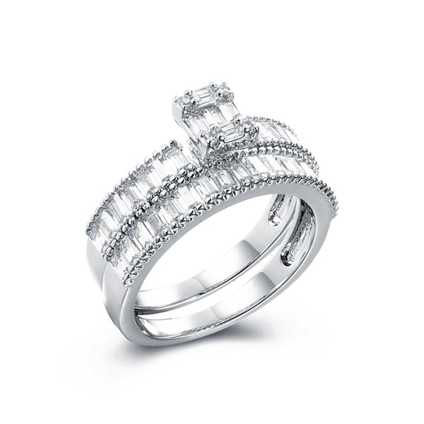 925 Silver Pear Emerald Cut and Half ET Set Rings