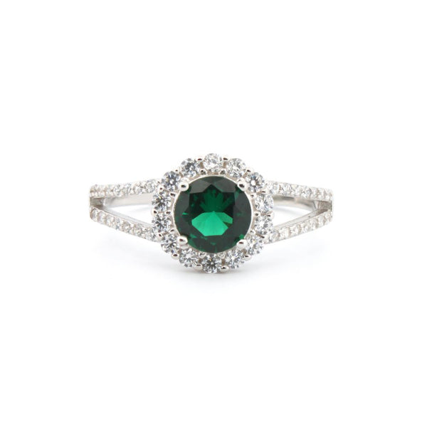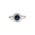 925 Silver Rhodium CZ Set Round Cluster Sapphire Blue Centre
