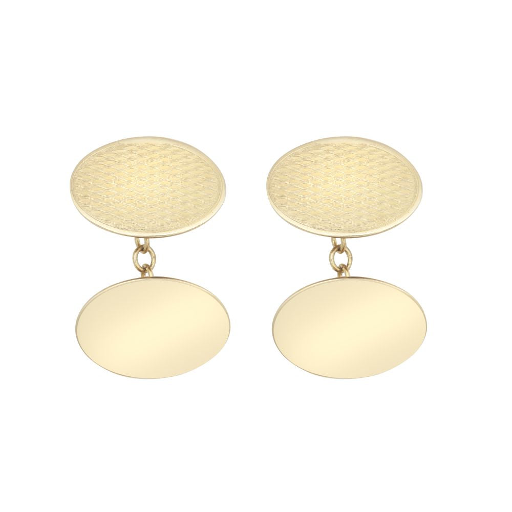 Product: 9ct Yellow GoldOval Art Deco Engine Turned Cufflinks Chain Back