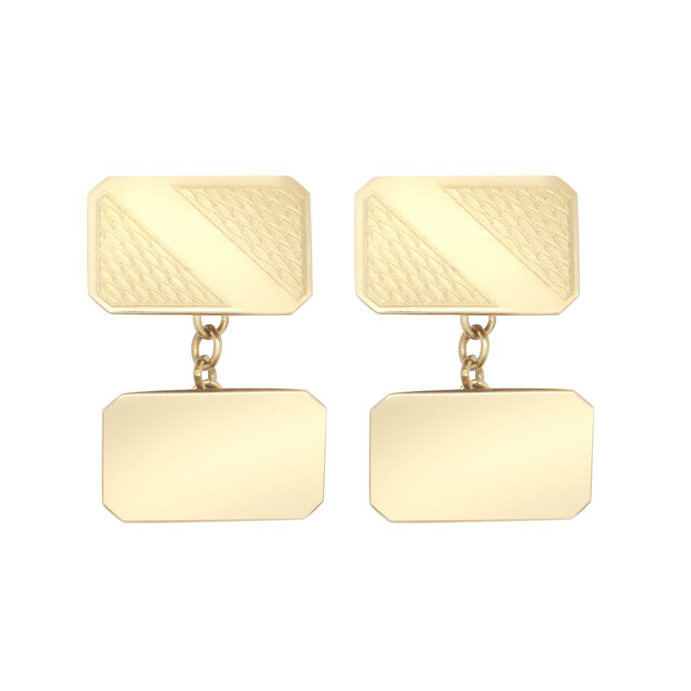 Product: 9ct Yellow GoldCut Corners Art Deco Engine Turned Cufflinks Chain Back