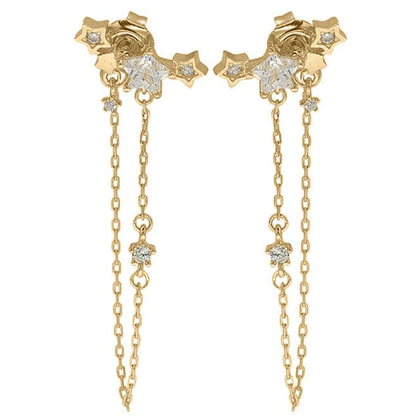 9ct Yellow Gold CZ Set Drop Chain Earrings