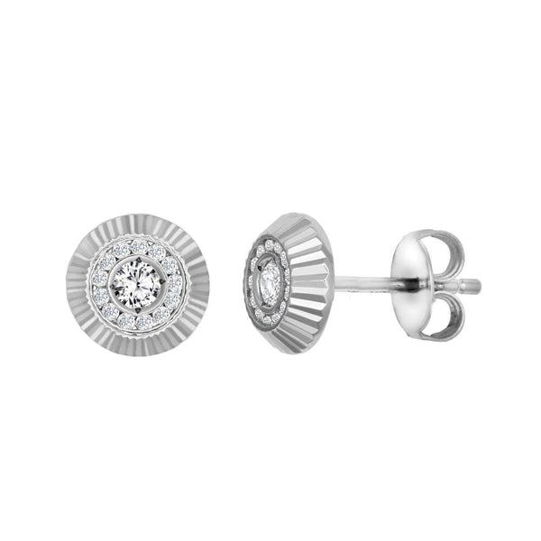 9ct White Gold 8mm CZ Bezel Stud Earrings