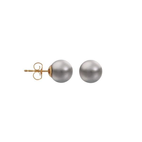 6-7mm premium quality grey cultured pearl Stud Earrings with a 9ct yellow gold post and butterfly fitting.