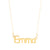 9ct yellow gold personalised nameplate in capital style writing. Please note that dimensions and weight will vary per order. Each bespoke jewellery item is unique and made to order, and therefore will be despatched within 7 - 10 days. Please note that bespoke, personalised and engraved items cannot be returned.