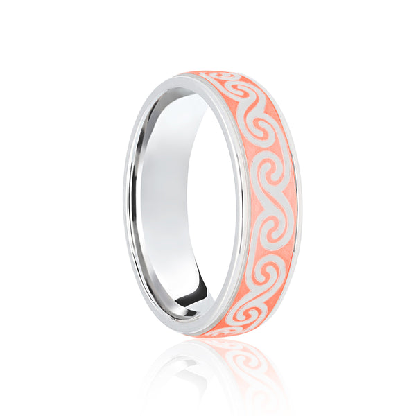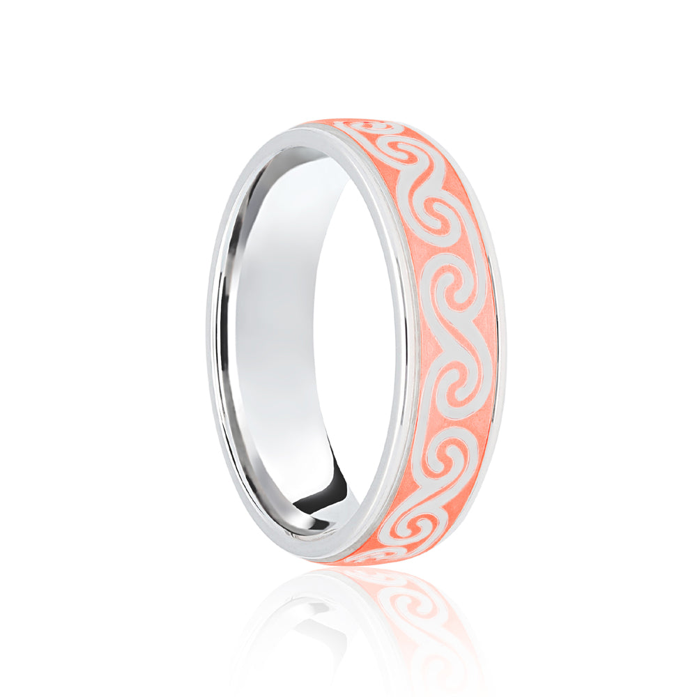 18ct Rose & White Flat Court 5mm Celtic Laser Engraved Wedding Band. Each Bespoke jewellery item is unique and made to order, and therefore will be despatched within 4-6 weeks. Please note that bespoke, personalised and engraved items cannot be returned.