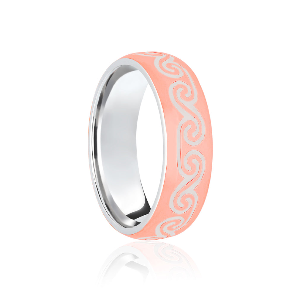 18ct Rose & White Court 5mm Celtic Laser Engraved Wedding Band. Each Bespoke jewellery item is unique and made to order, and therefore will be despatched within 4-6 weeks. Please note that bespoke, personalised and engraved items cannot be returned.
