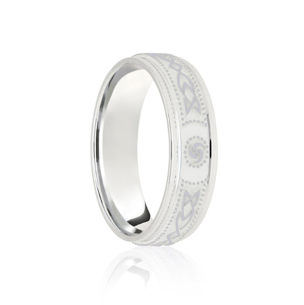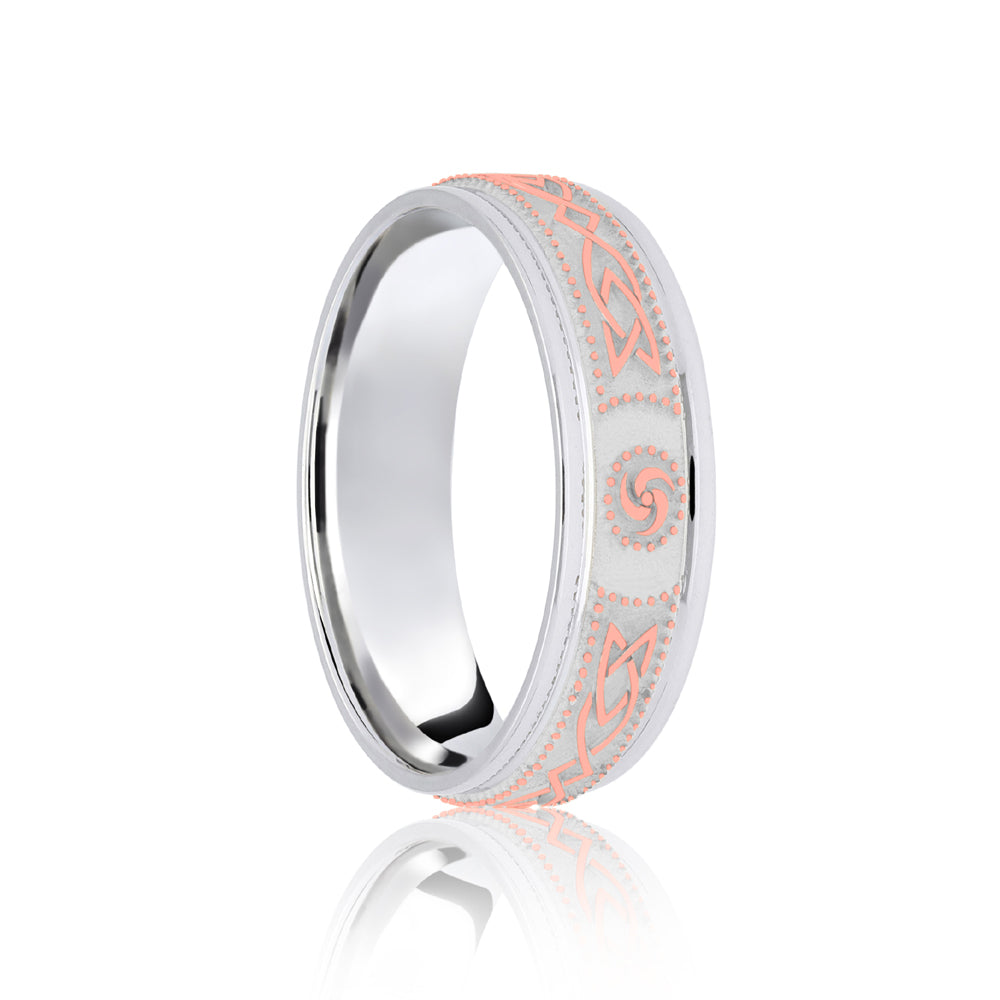 18ct Rose & White Flat Court 5mm Celtic Laser Engraved Wedding Band
