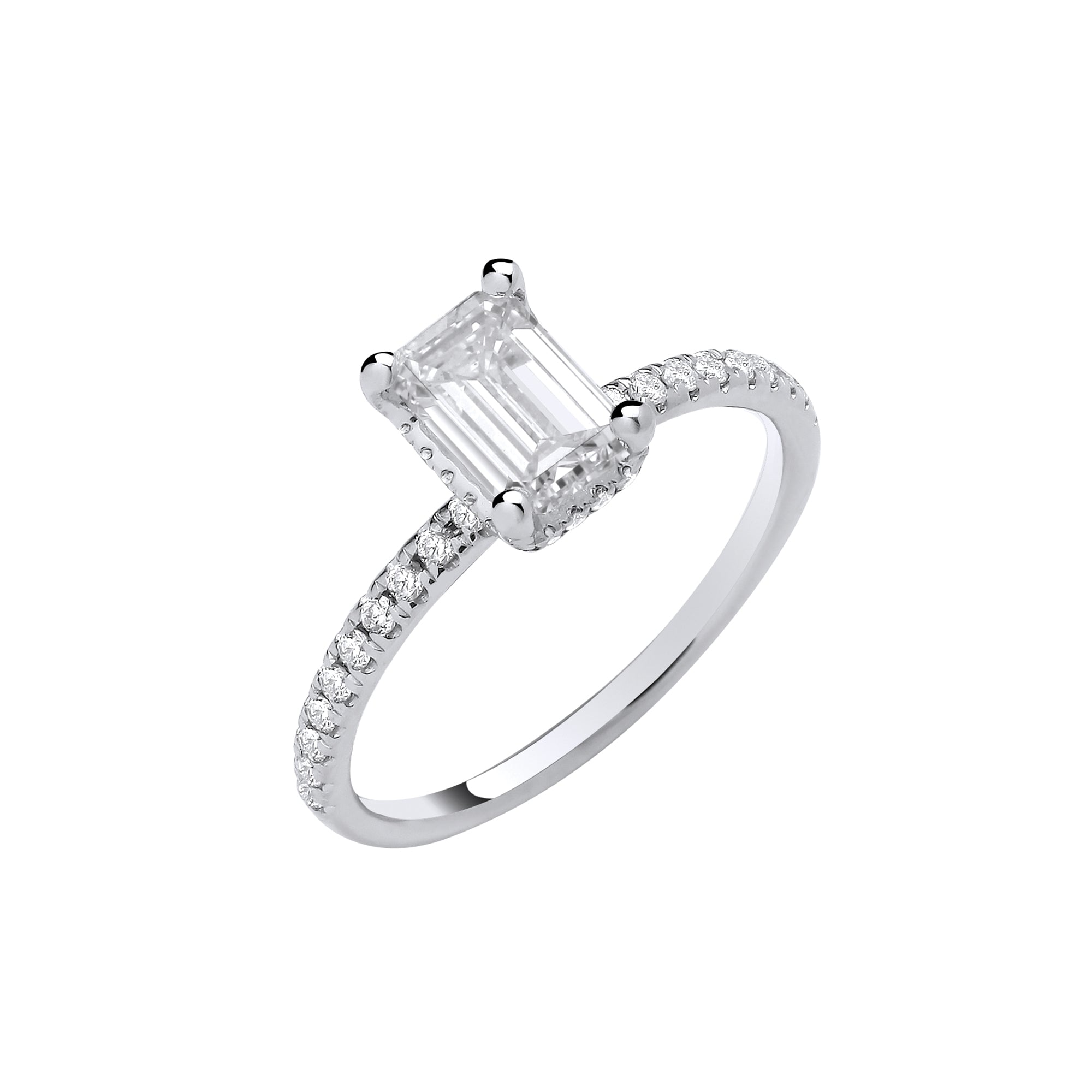 18ct White Gold 1.23ctw Emerald Cut LAB GROWN Hidden Halo Diamond Ring IGI Certified