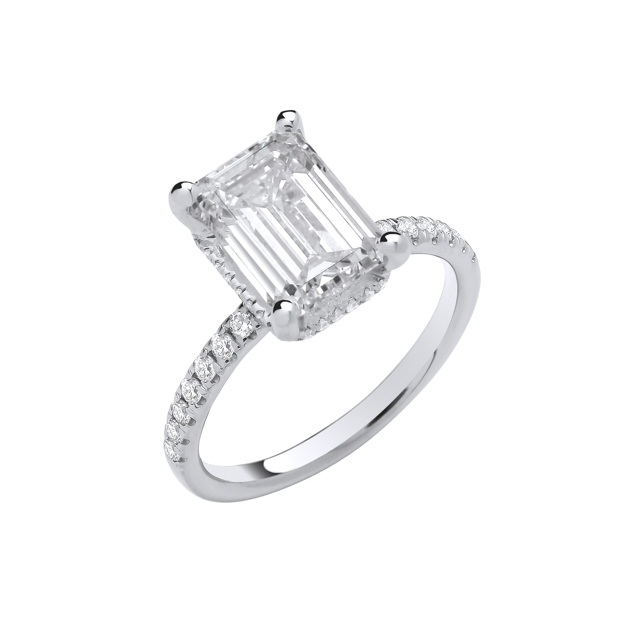18ct White Gold 3.30ctw Emerald Cut LAB GROWN Hidden Halo Diamond Ring IGI Certified