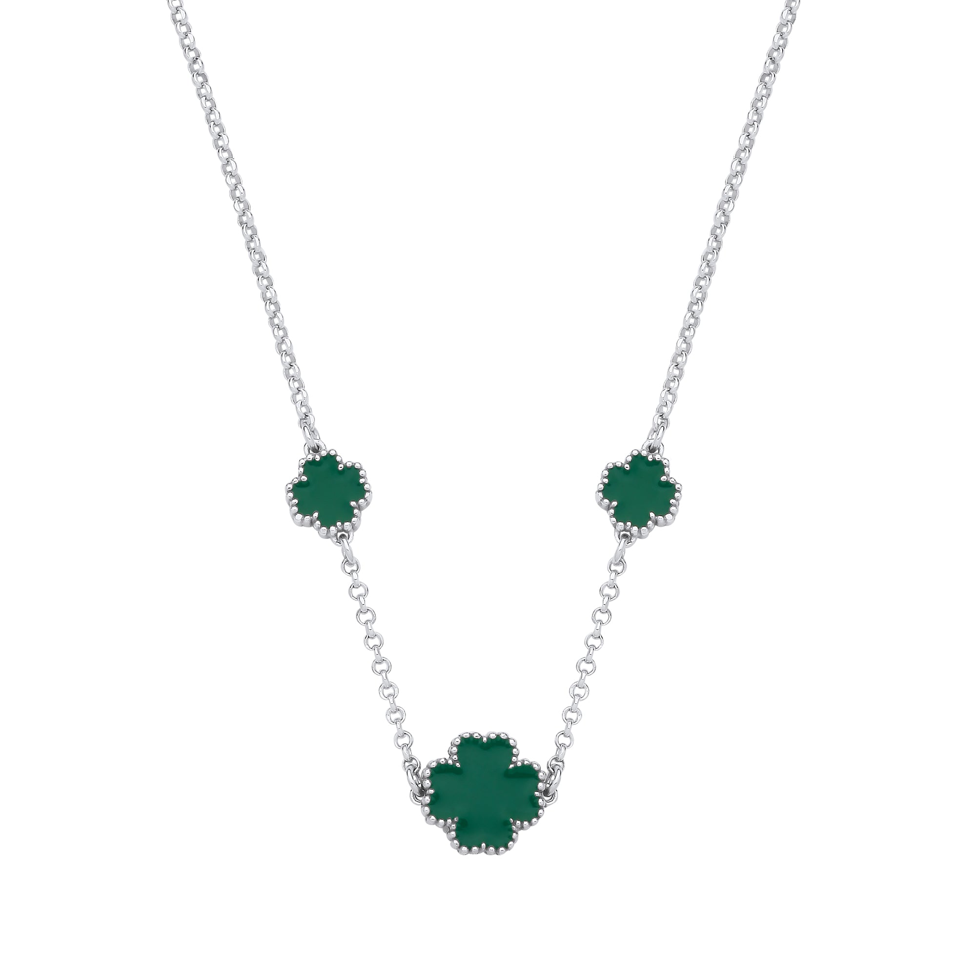 Silver GREEN Enamel Four Leaf Clover Necklace