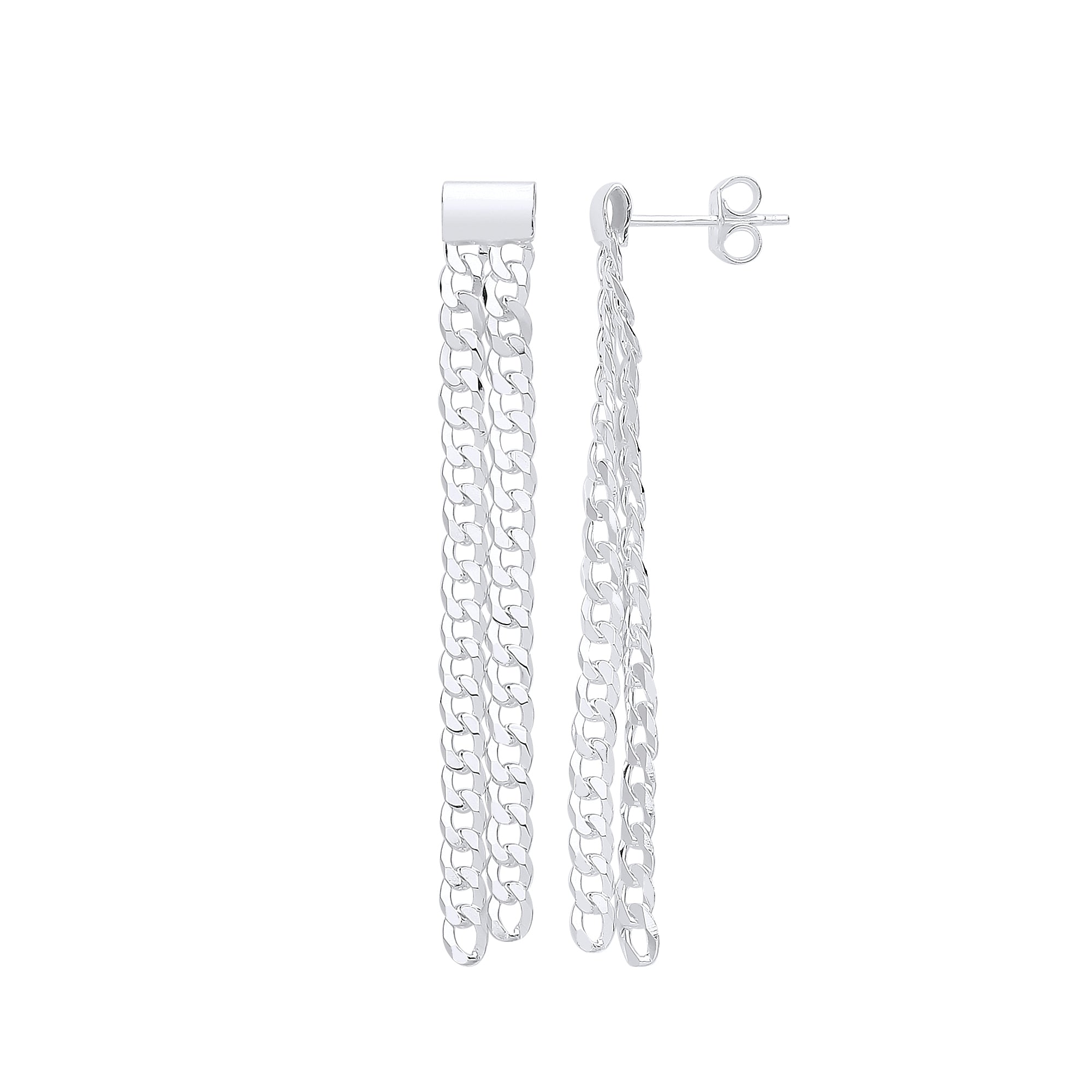 Silver Curb Chains Drop Earrings
