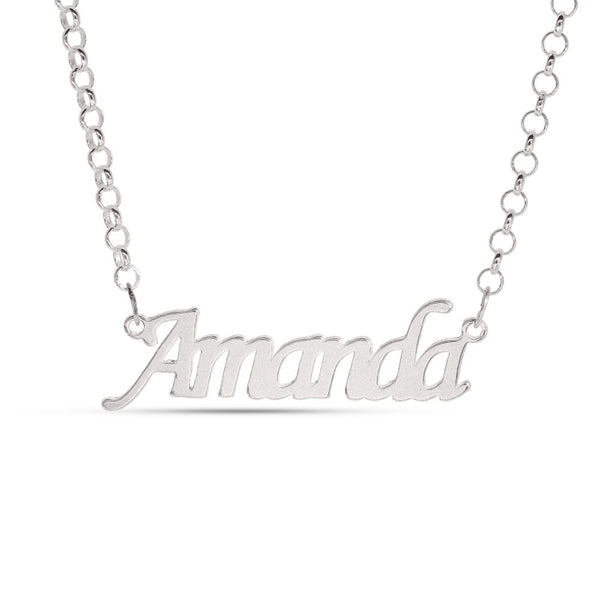 925 Sterling Silver personalised nameplate in capital letter block style writing. Price per name. Please note that dimensions and weight will vary per order. Each bespoke jewellery item is unique and made to order, and therefore will be despatched within 7 - 10 days. Please note that bespoke, personalised and engraved items cannot be returned. This nameplate comes with a chain.