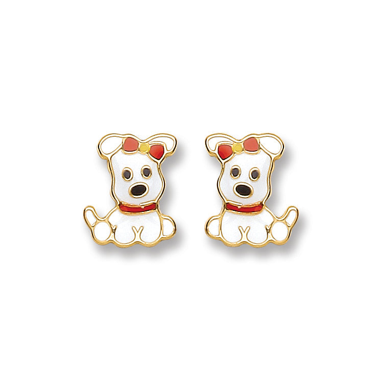 9ct Gold Enameled Puppy Studs