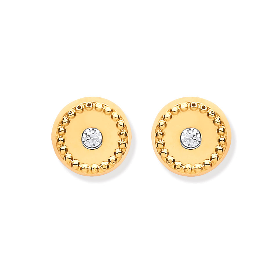 9ct Y/G 6mm Ribbed Edge with CZ Studs