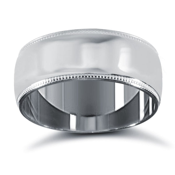 18ct White Gold Standard Weight D-Shape Profile Mill Grain Wedding Ring