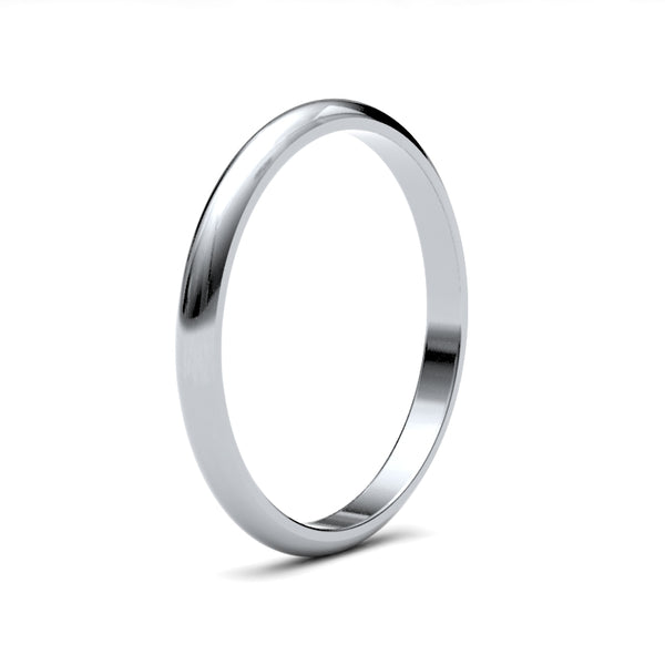 Bespoke hand-made 9ct White Gold 2mm standard weight D-Shape wedding / commitment ring. Features a brilliant hand-polished mirror-like finish. Each Bespoke jewellery item is unique and made to order, and therefore will be despatched within 2 weeks. Please note that bespoke, personalised and engraved items cannot be returned.