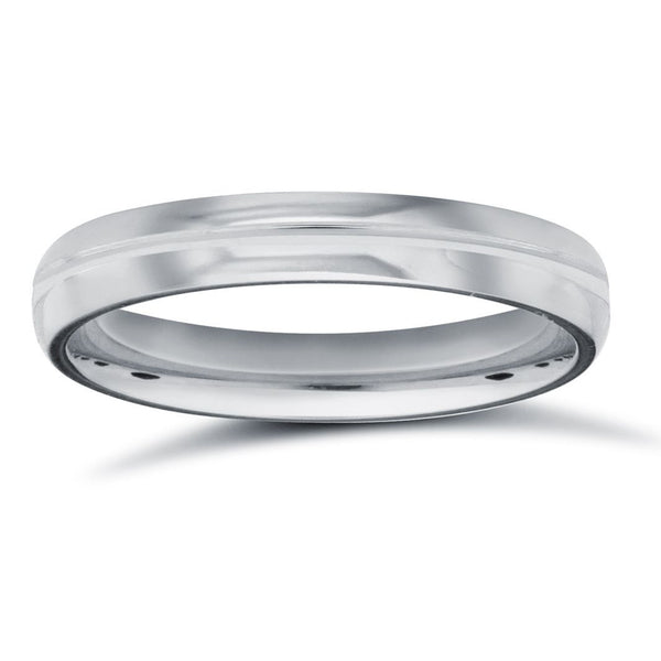 9ct White Gold Standard Weight D-Shape Profile Mirror Finish Wedding Ring