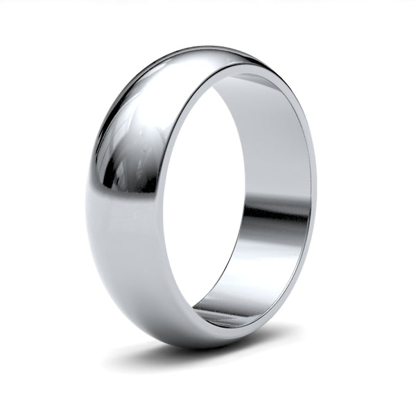 9ct White Gold Standard Weight D-Shape Profile Mirror Finish Wedding Ring