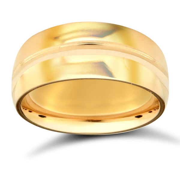 9ct Yellow Gold Premium Weight D-Shape Profile Centre Groove Wedding Ring