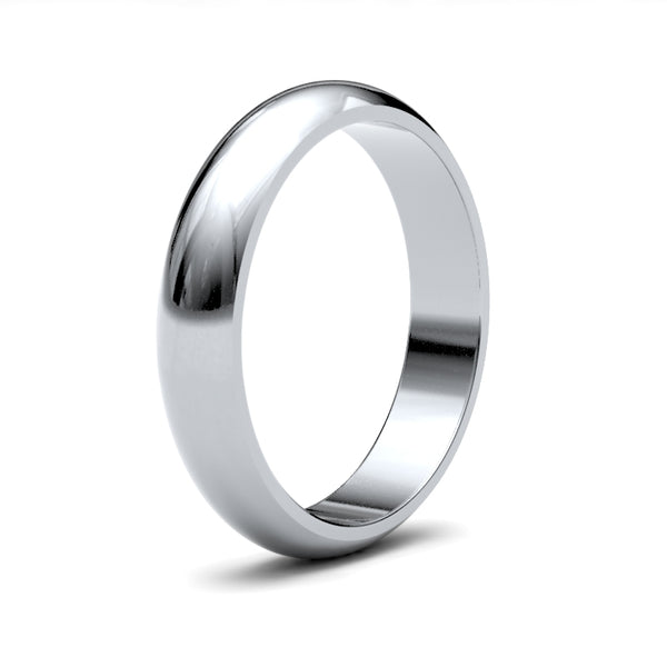 Bespoke hand-made Platinum 4mm standard weight D-Shape wedding / commitment ring. Features a brilliant hand-polished mirror-like finish. Each Bespoke jewellery item is unique and made to order, and therefore will be despatched within 2 weeks. Please note that bespoke, personalised and engraved items cannot be returned.