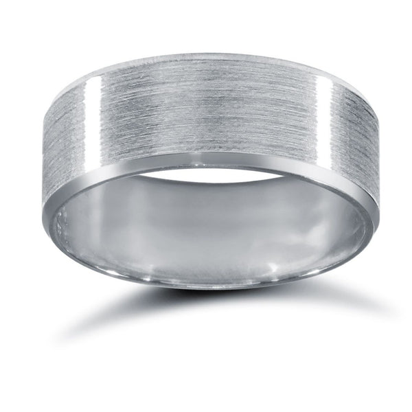 18ct White Gold Standard Weight Flat Court Profile Satin and Bevelled Edge Wedding Ring