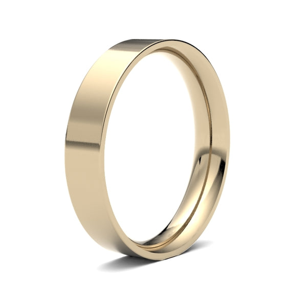 Bespoke hand-made 18ct Yellow Gold 4mm standard weight Flat Court wedding / commitment ring. Features a brilliant hand-polished mirror-like finish. Each Bespoke jewellery item is unique and made to order, and therefore will be despatched within 2 weeks. Please note that bespoke, personalised and engraved items cannot be returned.