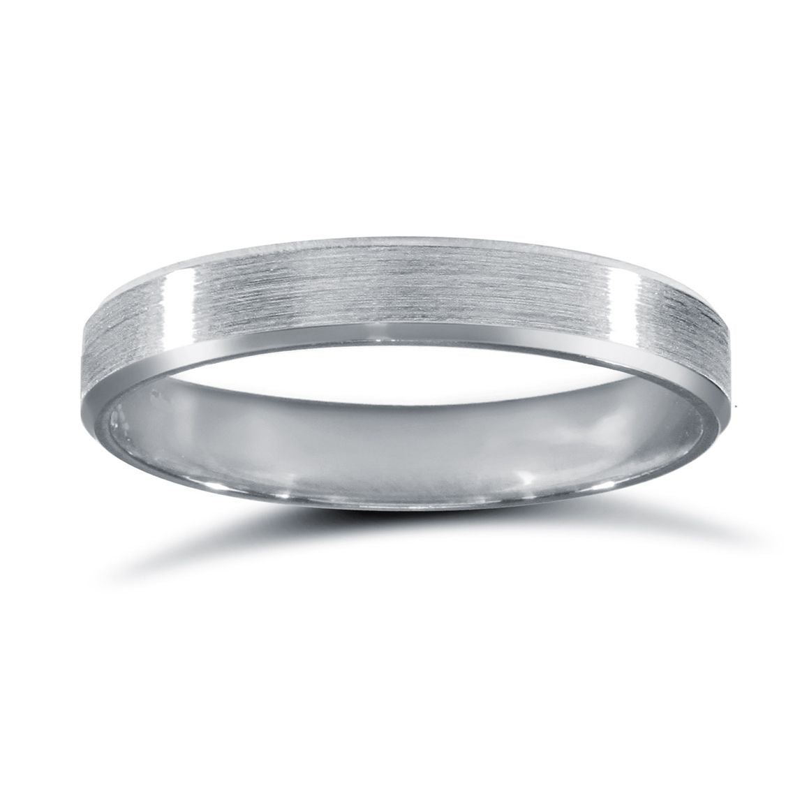 18ct White Gold Standard Weight Flat Profile Satin and Bevelled Edge Wedding Ring