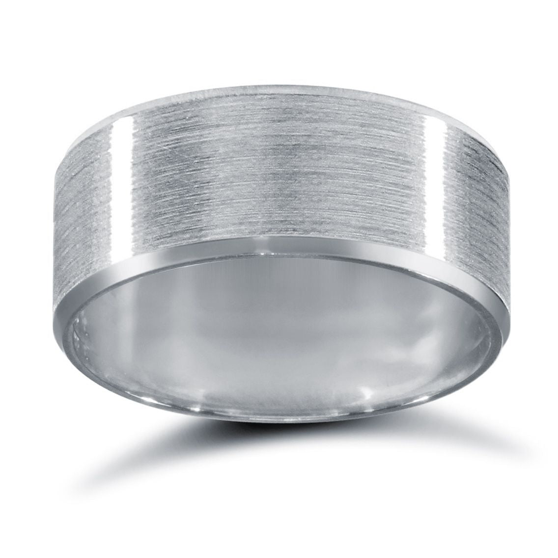 18ct White Gold Standard Weight Flat Profile Satin and Bevelled Edge Wedding Ring