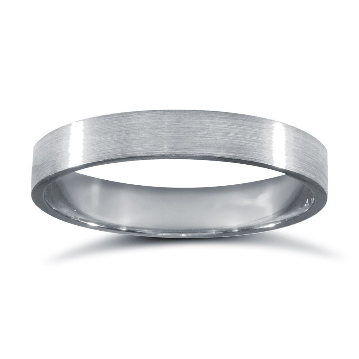9ct White Gold Standard Weight Flat Profile Satin Wedding Ring