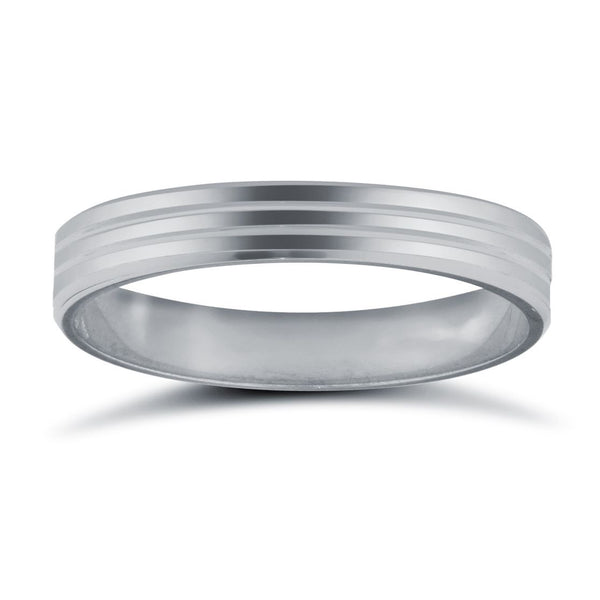 9ct White Gold Standard Weight Flat Profile Double Groove Wedding Ring
