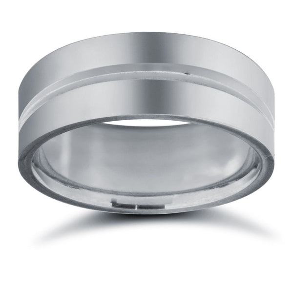 Platinum Standard Weight Flat Profile Centre Groove Wedding Ring